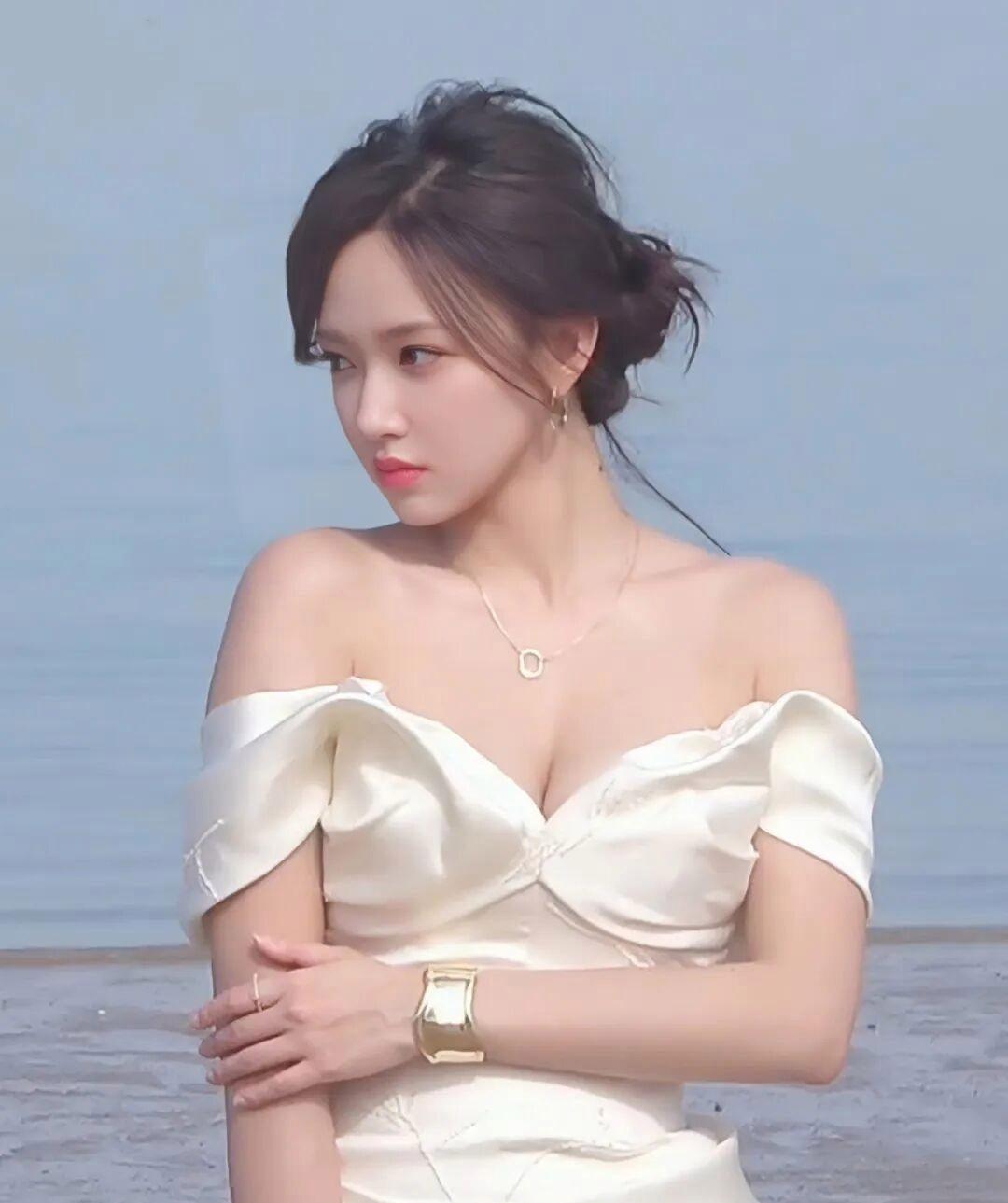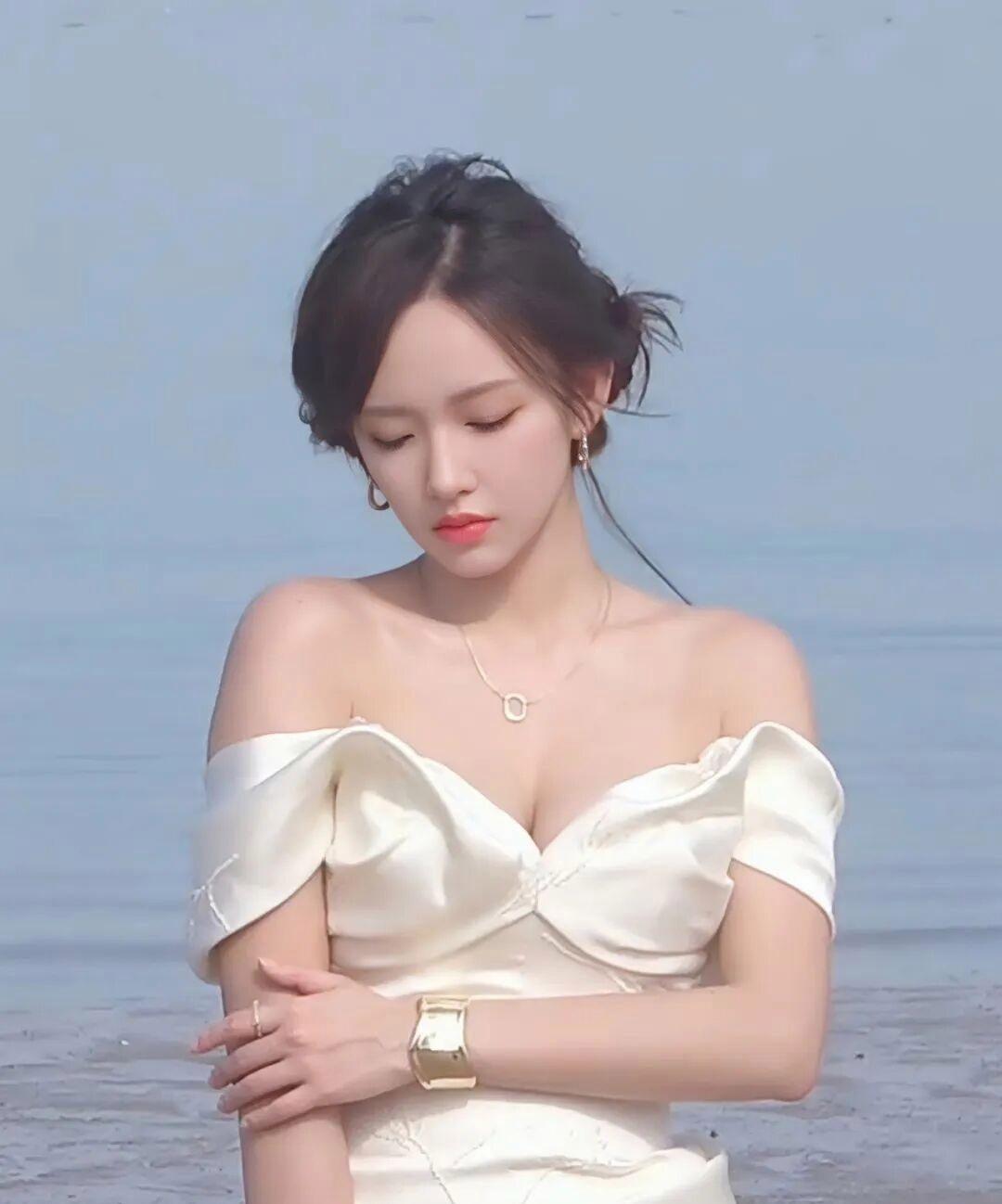 她身着的高定纯白礼裙,摒弃繁复的装饰与花哨的设计,以简约大气的版型凸显高级感,利落的深V剪裁恰到好处,既增添了造型的优雅氛围感,又完美展现出她优越的直角肩与精致锁骨,丝毫没有低俗之感。垂坠感十足的裙摆贴合身形,轻松勾勒出流畅纤细的腰线与完美腰臀比,搭配清透精致的妆容、温婉披肩长发,冷白肌肤在纯白裙装的映衬下更显透亮,一颦一笑都尽显优雅灵动,举手投足间散发着高贵气质。